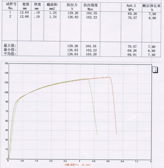 北京時(shí)代集團(tuán)之峰科技有限公司用最新型的時(shí)代金屬拉壓試驗(yàn)機(jī)對鐵皮進(jìn)行了拉伸實(shí)驗(yàn)。實(shí)驗(yàn)速度定為2毫米每分鐘,參數(shù)距離是50毫米。夾具采用專門的金屬拉伸牙口鉗。實(shí)驗(yàn)步驟是將材料固定到夾具上,記錄好原材料長度并標(biāo)識,開始實(shí)驗(yàn),以每分鐘2毫米進(jìn)行勻速拉伸,直到斷裂,記錄數(shù)據(jù)。最后報(bào)告內(nèi)容是材料長度大小,最大加荷力,斷后伸長率,力值位移,抗拉強(qiáng)度。
