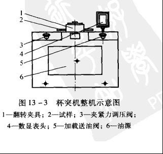 6)開(kāi)啟操作送油閥,使沖頭緩緩上升,直至試樣破裂自動(dòng)泄油,沖頭將試樣頂起,直至試樣破裂自動(dòng)打開(kāi)卸油閥,沖頭停止上升。