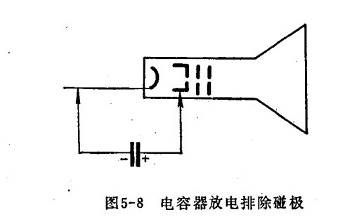 用大容量的電解電容器(如10微法以上)在直流電壓上充電(如300伏),然后在相碰之兩極放電,也可解決問(wèn)題,下圖示,電容充電時(shí)注意極性,放電時(shí)極性無(wú)關(guān)。