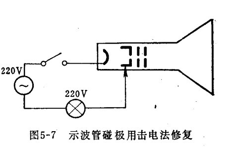 3.示波管兩極間漏電,可用高壓電壓法試修,將示波管第二陽(yáng)極電壓(3000伏)接漏電的一極,另一極通地,有可能將漏電雜物燒掉