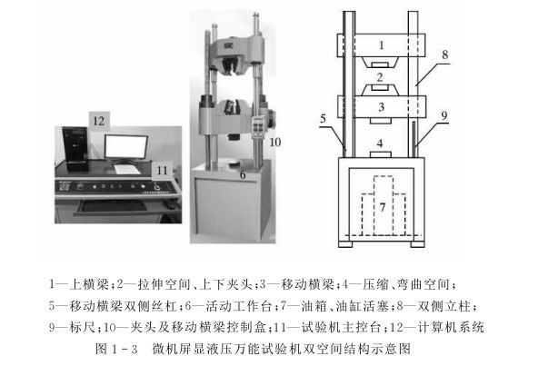 上橫梁;拉伸空間上下夾頭;移動橫梁;壓縮、彎曲空間