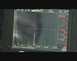 3.先將探頭發(fā)在被測(cè)件表面,觀察底波出現(xiàn)的位置、幅度及形狀 可以注意到,如果在探頭發(fā)射的超聲波傳遞路徑上,如果沒有缺陷,則在底波和始脈沖(時(shí)間零點(diǎn))之間應(yīng)該沒有獨(dú)立信號(hào)出現(xiàn)。
