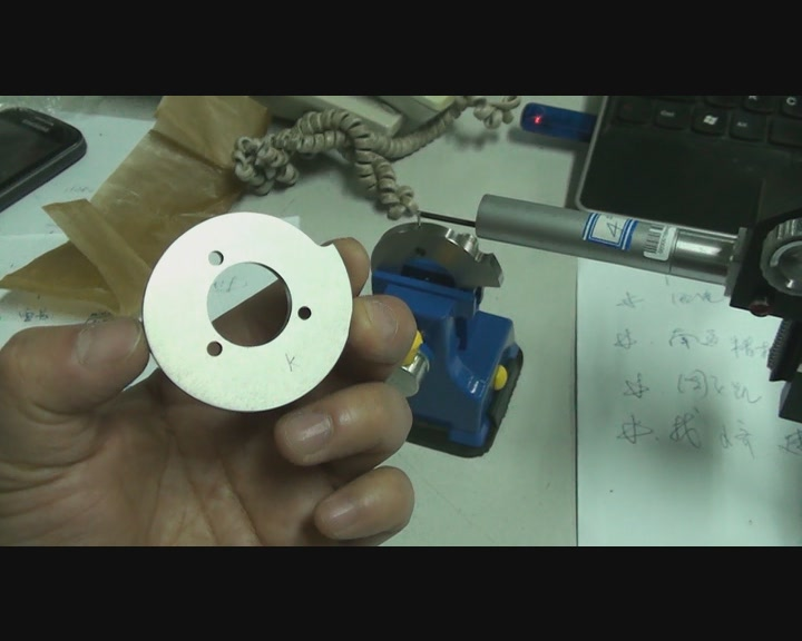 測量條件設(shè)置好之后,我們就開始擺放儀器和零件,要保證測針和被測面平穩(wěn)接觸。鑒于零件較小,使用小臺鉗夾持即可,另外,由于 TR300 的測頭與主機(jī)之間是靠一個小升降架連接的,因此,儀器本身也不需要另配臺架,只要把它墊高一點即可,非常方便。