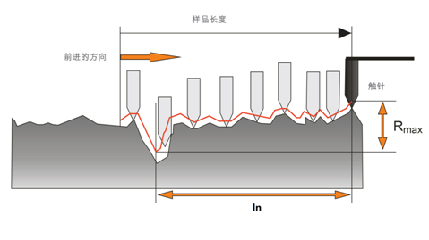 通過測針的自動滑行,將粗糙度曲線描繪下來,并進行計算,既可獲得這條粗糙度曲線的算術平均值(Ra),也可同時獲得深度值(Rmax)
