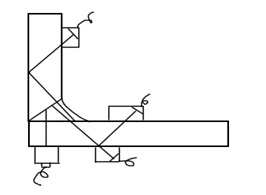 工況:以焊縫探傷為主,主要考慮板的對接焊、搭接焊、角焊;表面通常有漆、不光滑;板厚多在 25mm 以下;多為裝配件,即,已裝配完畢、不拆卸探測、可能只能單面探測。