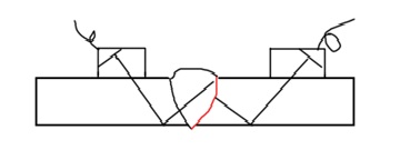 1 ,對接焊,焊縫余高未磨平、只能單面探測??墒褂眯碧筋^、觀察一次或二次回波,在焊縫兩側(cè)進行掃查探傷。