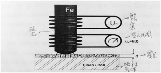 ○原理:將玻璃鋼層當(dāng)做一個(gè)非磁性的涂層,在其下墊磁性金屬基體。進(jìn)行涂層測(cè)厚。(見(jiàn)原理圖)