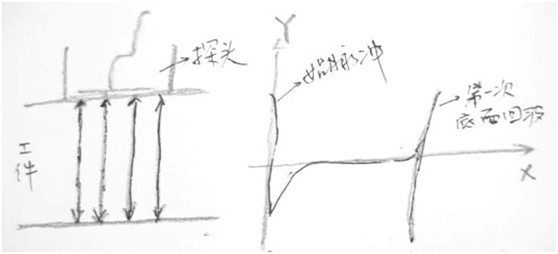 備注:t0點(diǎn)是發(fā)射的起始時(shí)間點(diǎn)(始脈沖),t1點(diǎn)是第一次底面反射回波被接收到的時(shí)間點(diǎn)。兩者 的時(shí)間差乘以聲速,再除以2,就是超聲波在工件一個(gè)單程傳遞的路程,即厚度值。