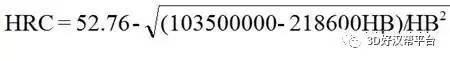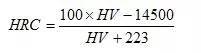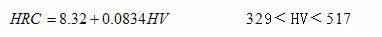 本公式與國(guó)家標(biāo)準(zhǔn)實(shí)驗(yàn)換算值對(duì)照,換算式計(jì)算結(jié)果與標(biāo)準(zhǔn)實(shí)驗(yàn)值之誤差為±0.1HRC。
