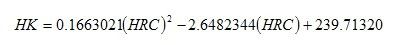 因?yàn)榕嫌捕扰c洛氏硬度的對(duì)應(yīng)曲線類似于拋物線,故由曲線得出近似的換算公式為
