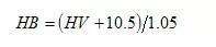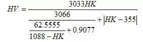 此公式換算結(jié)果與國(guó)家標(biāo)準(zhǔn)換算值對(duì)照,換算誤差為±2HV。