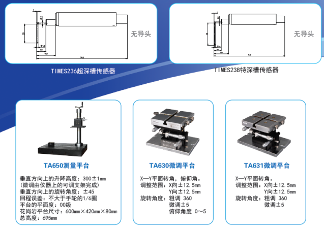PC軟件、通訊電纜、TA650測量平臺、TA630微調(diào)平臺、TA631微調(diào)平臺、專用打印機(jī)、平臺支架、多種傳感器